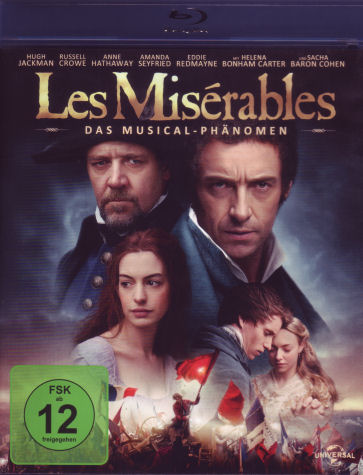 |  Les Miserables (Les Miserables) | Entstehung: | Großbritanien 2012 | | Laufzeit: | 158 min. | | FSK: | ab 12 Jahre | | Regie: | Tom Hooper | | Darsteller: | Hugh Jackman, Russell Crowe, Anne Hathaway, Amanda Seyfried, Sacha Baron Cohen | | Musik: | Claude-Michel Schönberg | | Handlung: | Frankreich im 19. Jahrhundert: Unter falschem Namen gelingt dem ehemaligen Sträfling Jean Valjean der Aufstieg zum angesehenen Fabrikbesitzer. In einer Notsituation nimmt er Cosette, die Tochter der Arbeiterin Fantine, bei sich auf und eröffnet ihr ein Leben in Wohlstand. Doch die Vergangenheit holt Valjean immer wieder ein in Gestalt des Polizeibeamten Javert, der gnadenlos Jagd auf ihn macht. Als sich die junge Cosette mitten in einer blutigen Straßenrevolte Hals über Kopf in den charmanten Revolutionär Marius verliebt, droht Valjeans Tarnung endgültig aufzufliegen. Wird er sich und die jungen Liebenden retten können? |