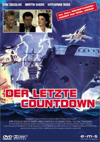 |  Der letzte Countdown (The final countdown) | Entstehung: | USA 1979 | | Laufzeit: | 98 min. | | FSK: | ab 12 Jahre | | Regie: | Don Taylor | | Darsteller: | Kirk Douglas, Martin Sheen, James Farentino, Katherine Ross, Ron O'Neil, Charles Durning | | Musik: | John Scott | | Handlung: | Dezember 1979: Bei einem Routinemanöver gerät der hochmoderne, amerikanische Flugzeugträger USS Nimitz in einen seltsamen, elektromagnetischen Sturm. Schiff und Besatzung werden in der Zeit zurück geschleudert und finden sich am 7. Dezember 1941, dem Tag des japanischen Angriffs auf Pearl Harbor, vor dem Inselstützpunkt wieder. Commander Yelland steht vor der schwerwiegendsten Entscheidung seines Lebens. Mit der überlegenen Feuerkraft des Schiffes und den hochmodernen F16-Kampfjets könnte er die japanische Flotte stoppen und die Weltgeschichte neu schreiben. |